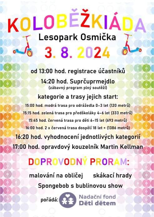 Lovosice 3. srpna 2024 od 14:20 v Lesoparku Osmička, registrace účastníků od 13:00. Pořádá Nadační fond Děti dětem.
