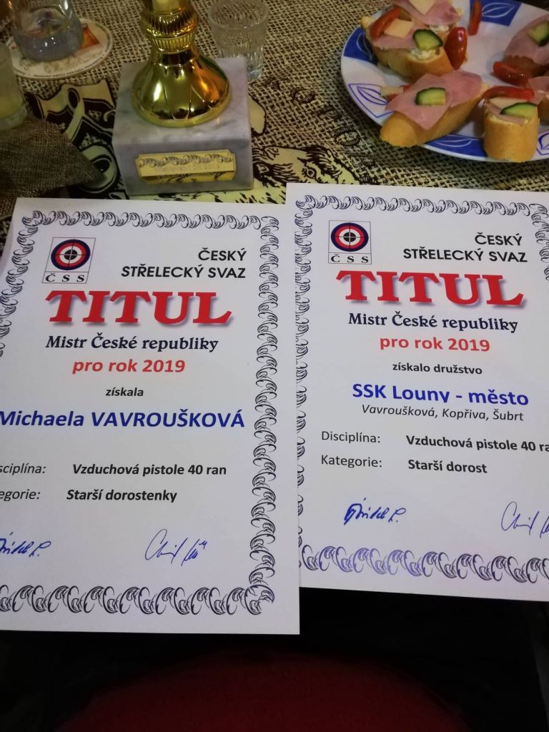 Michaela Vavroušková ze Solan se stala mistrem České republiky ve střelbě ze vzduchové pistole (40 ran) v kategorii starších dorostenek. Nově doplněno o článek z Litoměřického deníku ze dne 14. března 2019.