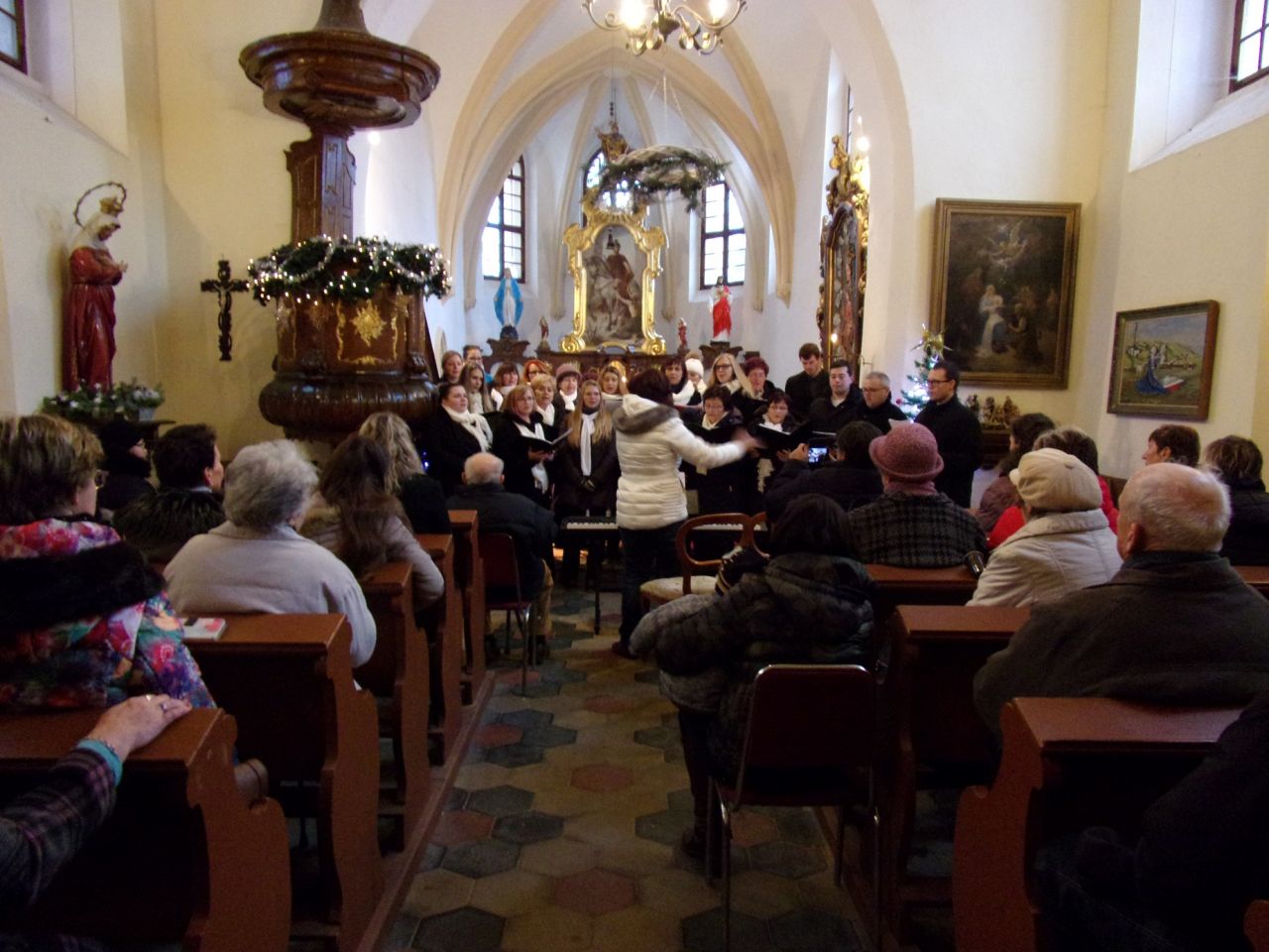 Fotografie z vystoupení pěveckých sborů v kostele sv. Martina v Solanech.