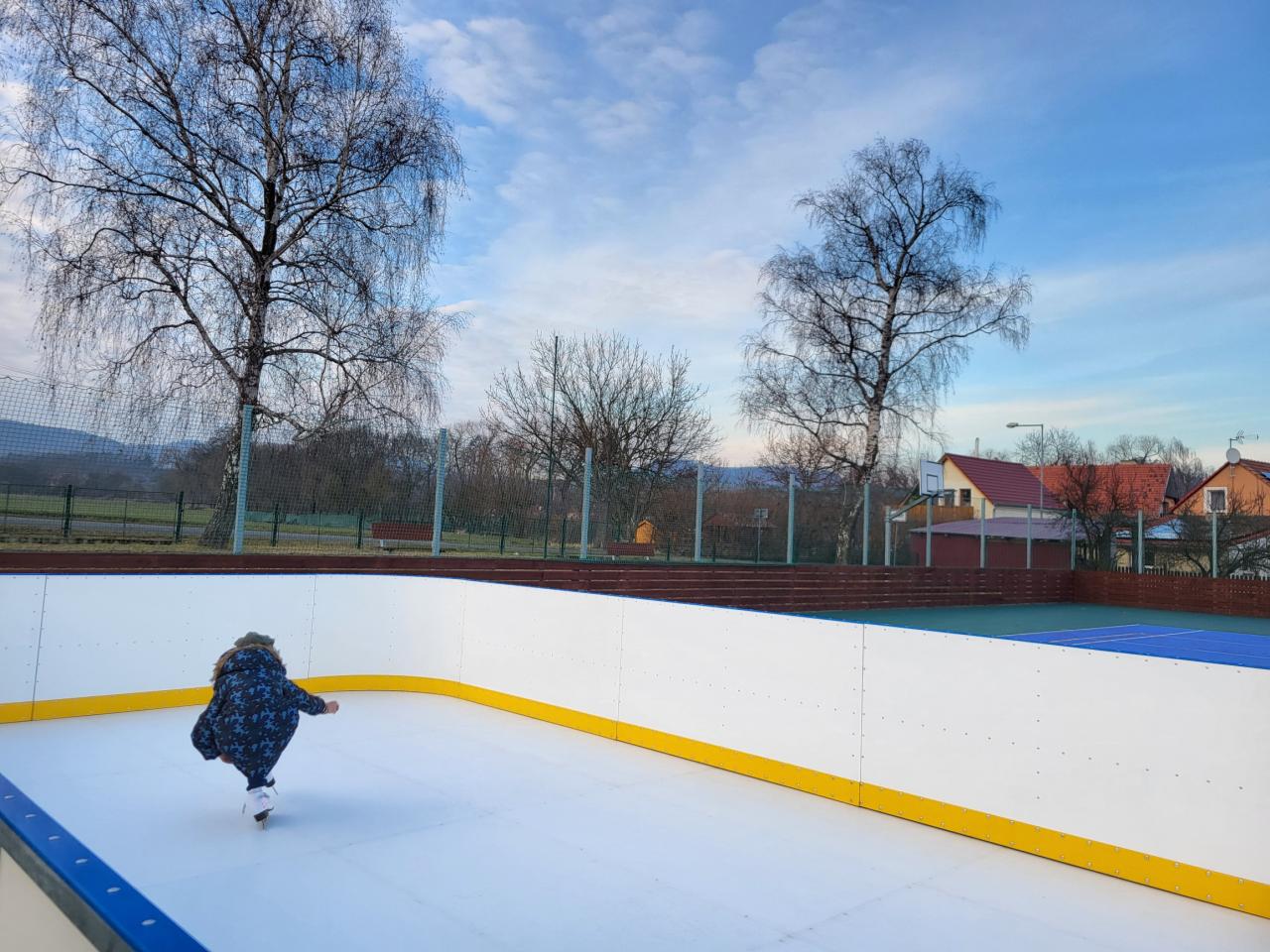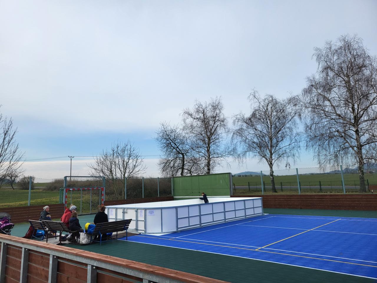 Od 11.2. do 23.2.2025 bylo možné bruslit na malém umělém kluzišti (10x5m) na hřišti v Solanech.